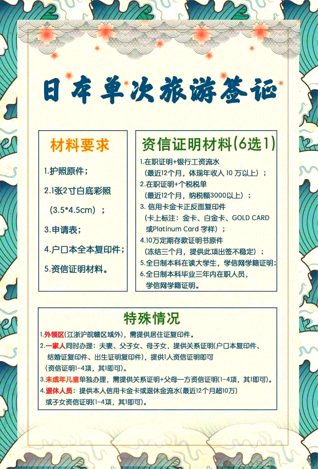 5、財(cái)務(wù)證明:申請(qǐng)人需提供足夠的資金證明,以支付在日本期間的費(fèi)用,如銀行存款證明、信用卡等。