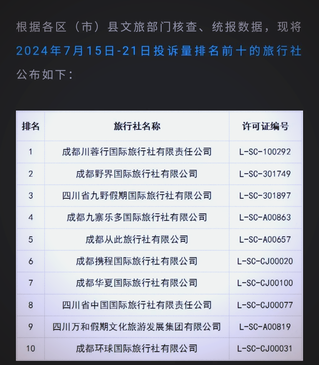 排名第一:成都XX旅行社