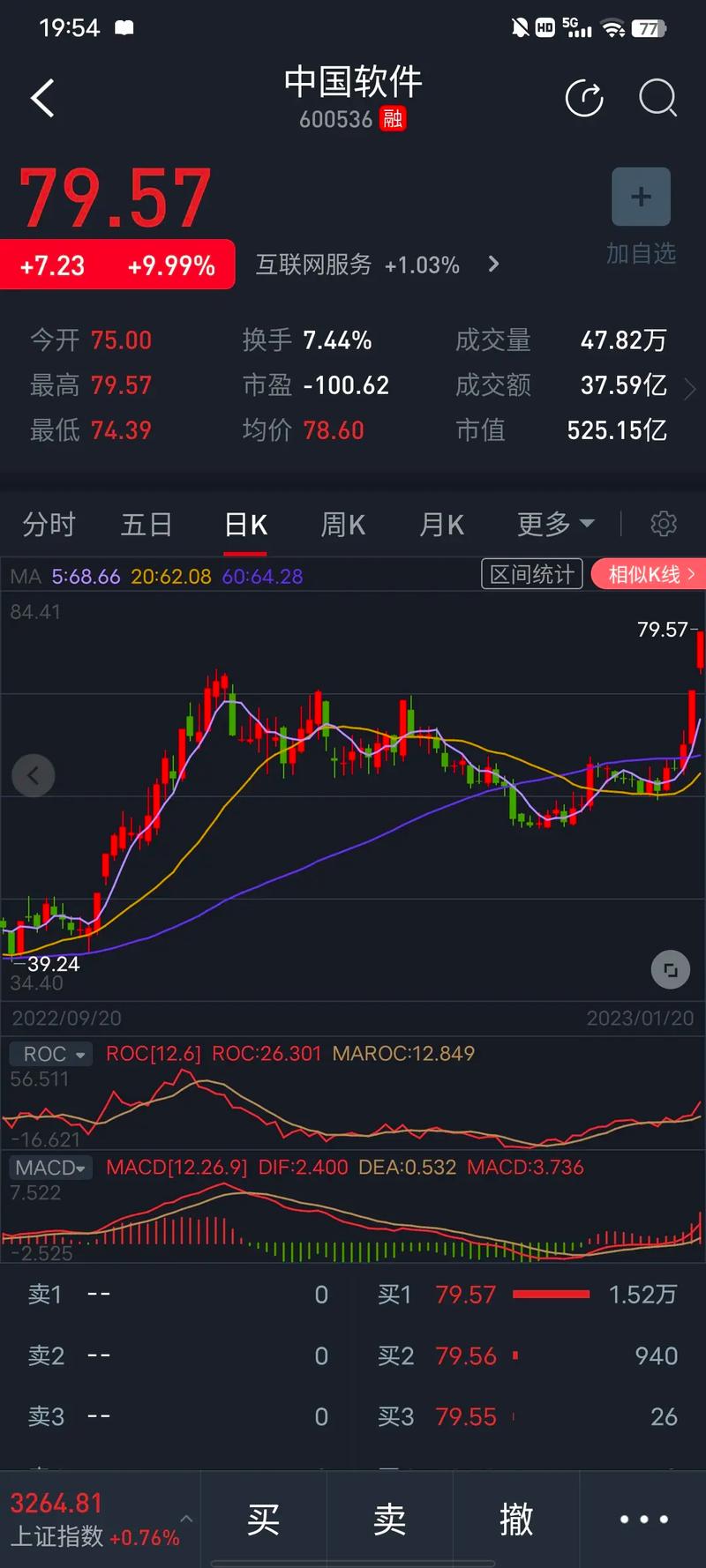 2. 中國軟件股票行情分析